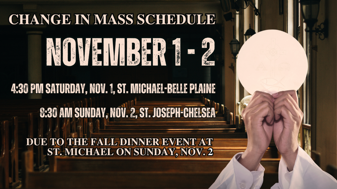 All Saints & Souls Kids Procession at ALL Masses on Saturday, November 1 & Sunday, November 2: Children are to gather at the back of the church before Mass begins. When the entrance procession starts the children will process in. As children reach the front of the altar they are to turn and face the congregation. Once Father Michael reaches the front of the altar, they will turn back to facing the altar and bow, then return quietly to sit with their families. At the end of Mass the children will receive a special blessing in thanksgiving for their participation and in honor of the saints they represent.