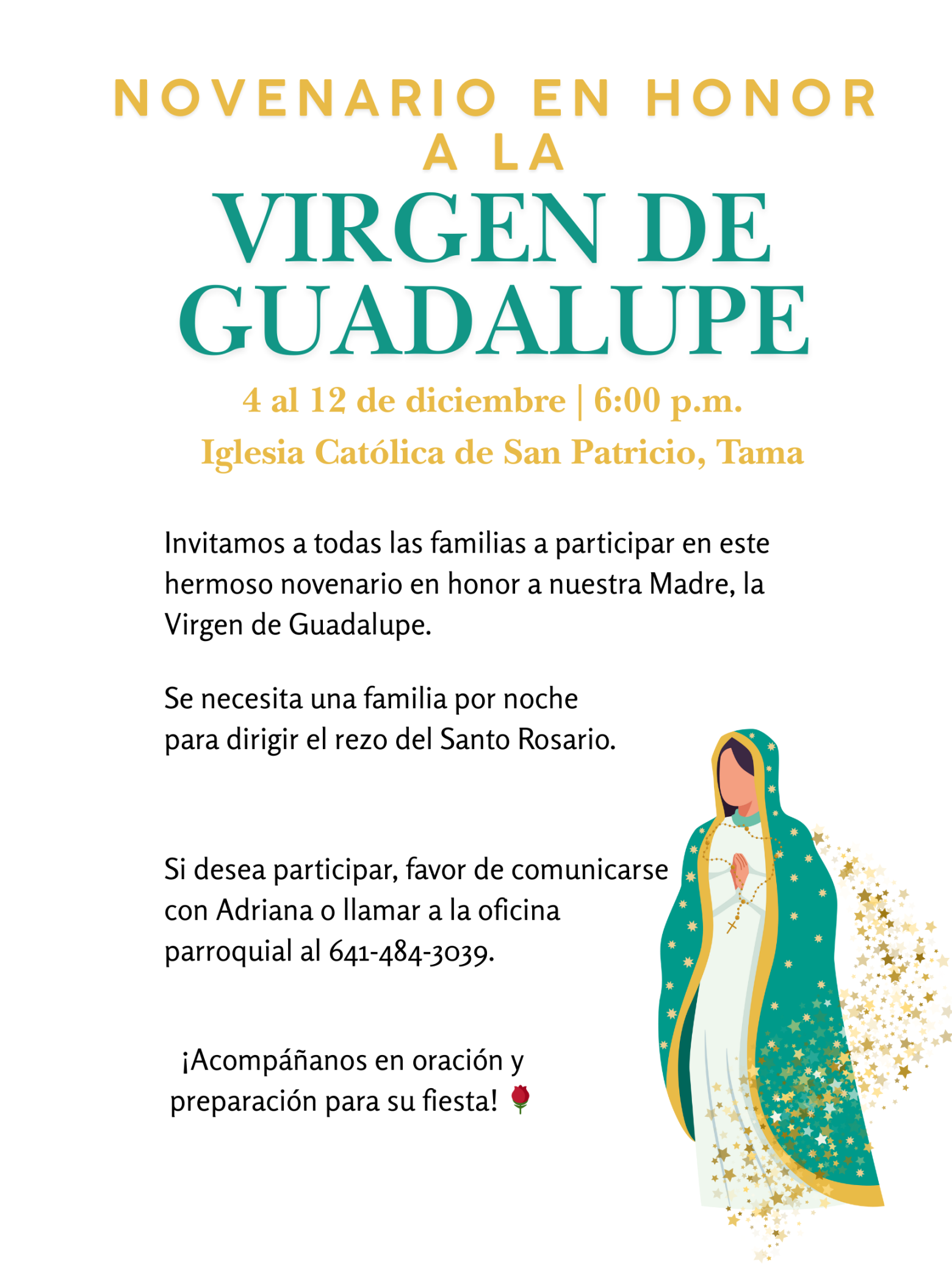 Para inscribirte o hacer preguntas, por favor llama a la oficina parroquial al 641-484-3039.