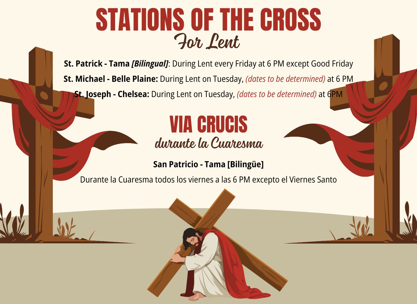 To register or ask questions, please call the parish office at 641-484-3039.